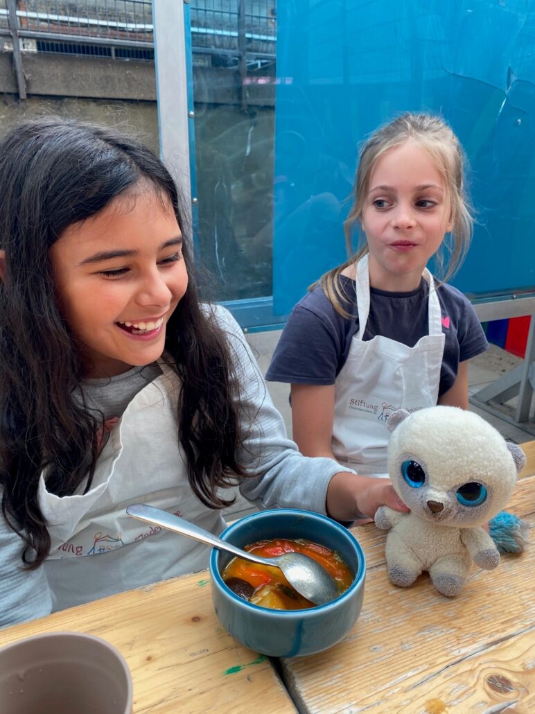 unsere Klasse war bei der Schnippeldisco. Dort haben wir selber Gemüse geschält und geschnitten und eine Suppe gekocht.