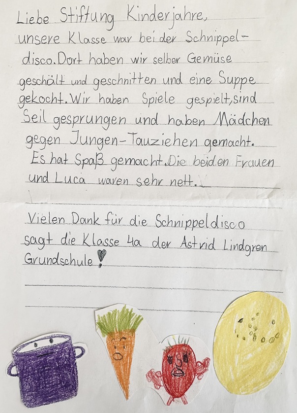 Vielen Dank für die Schnippeldisco sagt die Klasse 4a der Astrid-Lindgren-Grundschule❤️