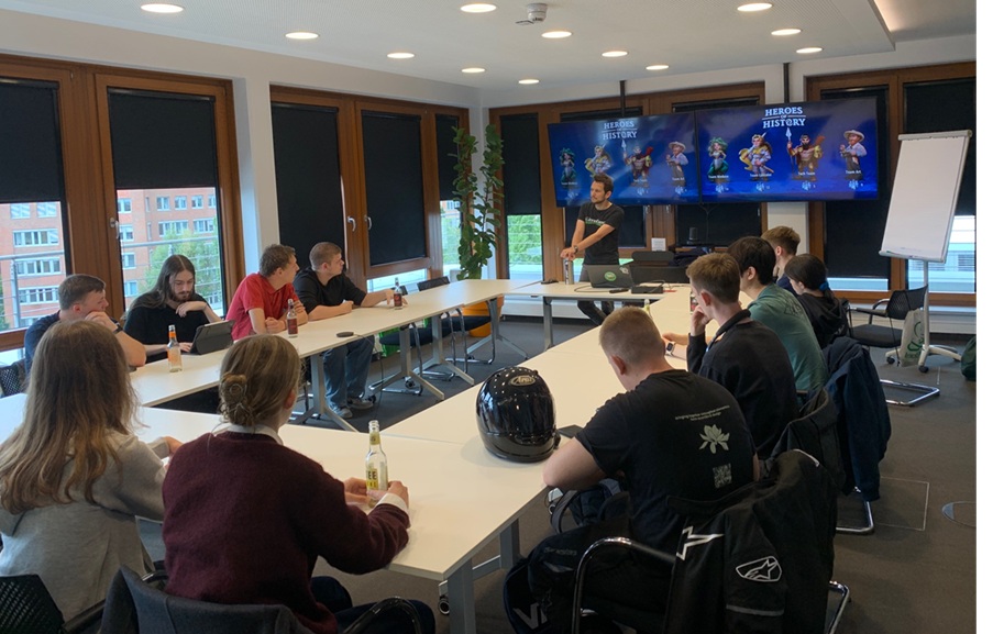 Ein besonderes Highlight des Besuchs war das Gespräch mit einem Game Designer. Er berichtete ausführlich über seinen persönlichen Werdegang, erklärte, wie er zu InnoGames gekommen war, und gab spannende Einblicke in die Arbeit eines Game Designers. Dabei erfuhren wir, dass dieser Beruf nicht nur viel Kreativität erfordert, sondern auch Teamarbeit und ein gutes Verständnis für Spielerbedürfnisse und technische Kenntnisse voraussetzt.